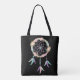 Sac fourre-tout à Boho dans le noir avec l'image rêveuse de receveur. Sac fourre-tout rêveur à receveur dans le noir. Voici un joli sac pour attraper tous vos rêves ! Le sac fourre-tout noir avec des roses en pastel, des menthes et le pourpre a coloré le receveur rêveur floral imprimé sur l'avant et le dos du sac.