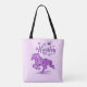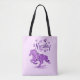 Personnalisez ce unique Sac fourre-tout Cheval "One of a Kind" ! Il présente une silhouette de cheval galopante dans de belles fleurs violettes, entourée de coeur violet! Design D'Art Original Par L'Artiste Kerry Miller.