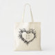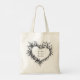 Sac fourre-tout personnalisé boho chic orné d'un croquis de coeur floral sauvage. Design botanique noir et blanc artistique. Personnalisez ce sac réutilisable avec des noms. Cadeau unique parfait pour les mariages bohèmes, douches de mariée, demoiselles d'honneur, faveurs d'enterrement de vie de jeune fille, amoureux de la nature, enseignants ou pour les courses quotidiennes avec style.