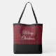 Ce sac fourre-tout est montré dans de buffle rouge de Noël le plaid préféré et noir qui peut être utilisé pendant l'année ronde. Courroies noires de poignée, équilibre supérieur noir et fond noir. Texte de Joyeux Noël dans le blanc des deux côtés.