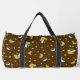Motif avec des tasses de café, des fleurs et des croissants sur fond brun foncé