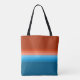 Sac fourre-tout à rayures ombragées orange et bleu pour femmes. Profitez de la couleur dégradé des vibes arc-en-ciel rétro de l'orange foncé au bleu profond.