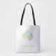 Mode trois ballons Sac fourre-tout. Les ballons colorés en jaune, turquoise et rose ont un message texte : Célébrez les bons moments. Le texte peut être personnalisé.