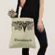 Arbre aux branches pleurantes, au-dessus du nom personnalisé. Le côté inverse montre les branches d'arbres en motif kaléidoscopique. beige clair Arrière - plan.