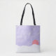 Ce sac fourre-tout est conçu avec ma représentation d'un coucher de soleil orange sur des montagnes enneigées sous un ciel de lavande.