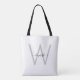 Sac fourre-tout personnalisé avec monogramme script. Blanc.