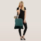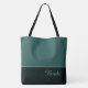 Ce charmant sac fourre-tout à la mode affiche le mot "Bride" en blanc sur un fond vert émeraude foncé avec la partie supérieure du sac dans une couleur émeraude mer personnalisée avec des accents de brume verte marine. Il y a amplement de place pour du texte personnalisé. Les graphiques et le texte sont sur les deux côtés de ce sac fourre-tout. Poignée noire. Personnalisez davantage ou achetez tel quel.