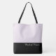Ce charmant fourre-tout à la mode affiche le mot "Demoiselle d'honneur" en texte blanc sur fond noir, la partie supérieure du sac étant de couleur orchidée rose pâle personnalisée. Il y a suffisamment de place pour un texte personnalisé. Les graphiques et le texte sont sur les deux côtés de ce fourre-tout. Poignée noire. Personnalisez davantage ou achetez tel quel.