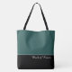 Ce charmant sac fourre-tout avant-garde affiche le mot "Demoiselle d'Honneur" en texte blanc sur fond noir avec le haut du sac en vert mer émeraude personnalisé. Il y a suffisamment de place pour du texte personnalisé. Les graphiques et le texte sont sur les deux côtés de ce sac fourre-tout. Poignée noire. Personnalisez davantage ou achetez tel quel.