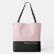 Ce charmant sac fourre-tout à la mode affiche le mot "Témoin de mariage" en texte blanc sur fond noir, avec la partie supérieure du sac dans une couleur rose Sucre Filé personnalisée (rose blush). Il y a amplement d'espace pour un texte personnalisé. Les graphiques et le texte sont sur les deux côtés de ce sac fourre-tout. Poignée noire. Personnalisez davantage ou achetez tel quel.