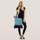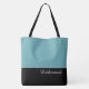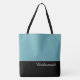 Ce charmant sac fourre-tout à la mode affiche le mot "Demoiselle d'honneur" en blanc sur fond noir avec la partie supérieure du sac en bleu piscine tropical. Il y a beaucoup de place pour du texte personnalisé. Les graphiques et le texte sont sur les deux côtés de ce sac fourre-tout. Poignée noire. Personnalisez davantage ou achetez tel quel.