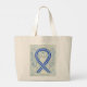 Le sac fourre-tout présente un ruban de sensibilisation bleu et blanc. Sclérose latérale amyotrophique (SLA) souvent appelée joueur de baseball, la maladie de Lou Gehrig. Il utilise un ruban rayé bleu et blanc ou un ruban bleu. Laissez ces rubans de sensibilisation rayés blancs et bleus contribuer à sensibiliser ! Les sacs fourre-tout d'art du ruban de sensibilisation peuvent être customisés de messages personnalisés pour vous remercier de vos dons pour les collectes de fonds, l'éducation à la sensibilisation ou d'autres événements ou occasions spéciaux. Pour en savoir plus sur notre art, consultez le site AwarenessGallery.com . L'art est également disponible pour la collecte de fonds par l'intermédiaire de DonnaBellasAngels.org.