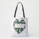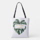 La feuille de palmier tropical est tout dans ce design. Ce modèle de sac fourre-tout de mariage combine deux types de police pour un look plus dynamique.