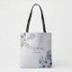 Sac fourre-tout personnalisé de la tribu de la mariée avec un design aquarelle floral bleu poussiéreux, gris et blanc. Le verso présente une impression florale intégrale. N'oubliez pas de vérifier dans ma boutique pour voir toute la collection de mariage !