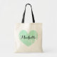 Sac fourre-tout de mariage personnalisé avec coeur vintage vert menthe. Créez vos propres sacs mignons pour les invités. Sacs fourre-tout cardiaques de l'équipe sur mesure pour la fête de mariage. Personnalisable avec nom. Une jolie faveur ou idée cadeau pour la mariée d'être et épouse l'entourage. Faites-en un pour les demoiselles d'honneur, la femme d'honneur, la mère de la mariée, la fille aux fleurs, la mère, la soeur, les amis, etc. Conception du logo de l'équipe de menthe pour mariage rustique, élégante douche nuptiale, bachelorette, soirée filles / week-end. Texte de typographie de script élégant.