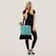 Ce beau sac fourre-tout avant de mode montre le mot "Mariée" dans une couleur de texte Aqua sur le noir avec le sac fourre-tout supérieur en Aqua-Turquoise avec des vignes noires et des défilés partout. A beaucoup de place pour le texte personnalisé. Les graphiques et le texte sont des deux côtés de ce sac fourre-tout. Poignée noire. Customisez plus loin ou achetez comme indiqué.