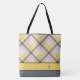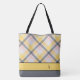La combinaison de couleurs agréable dans ce sac fourre-tout de style motif plaid en fera l'un de vos sacs préférés de transport. Créé dans un plaid jaune et gris frais avec de légères touches de rose pêche et de noir. Il suffit de personnaliser le texte du monogramme dans l'éditeur Zazzle facile. Vous avez le choix entre deux styles et deux tailles.