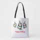 Les Pingouins de fête avec cadeaux partagent les Joyeuses Fêtes pendant la saison des Fêtes. Ce sac fourre-tout de Noël apportera des sourires à des amis et à des étrangers avec ces mignons petits pingouins. Le sac fourre-tout de vacances idéal pour le bureau, le shopping ou toute activité. Cette année, je souhaite des Joyeuses Fêtes sans dire un mot de notre digne sac fourre-tout de Noël envié.