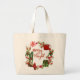 Sac fourre-tout de Noël du randonneur avec sac à dos, tasse de café, fournitures de camping, bottes, cardinal rouge.