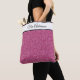 Ce sac fourre-tout est montré avec une fausse impression de parties scintillant rose amusante. Possède un groupe blanc au sommet avec votre titre ou nom personnalisé dessus. Conception double face. Taille moyenne affichée. A des sangles noires. Customisez cet objet ou achetez tel quel.