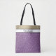 Ce sac fourre-tout est montré avec une fausse impression amusante de parties scintillant violet. Possède un faux groupe Gold parties scintillant au sommet avec votre titre, nom ou phrase préférée personnalisé. Taille moyenne affichée. A des sangles noires. Customisez cet objet ou achetez tel que conçu.