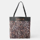 Faites du léopard avec ce sac fourre-tout classique tout-en-un. Ce design est composé d'un arrière - plan de texture de peau de léopard brun, noir et blanc avec une bordure en cuir noir. Au centre de la bordure, vous pouvez ajouter le nom du destinataire pour personnaliser ce produit. Ce sac fourre-tout fait un grand cadeau à la femme qui aime être élégante.