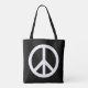Sac fourre-tout d'épaule symbole de paix en noir et blanc ou couleurs personnalisées. Changez dans n'importe quelle combinaison de couleurs. Faites vos propres sacs anti-guerre modernes pour le shopping, le travail et plus encore. Impression double côté. Ajoutez votre propre texte personnalisé en option. De taille moyenne et grande disponible.
