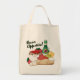 Sac fourre-tout en toile avec le vin italien, pâtes & sauce, poivrons, ail, tomates et pain. Ça a l'air délicieux, non ?