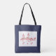 Des flamants roses colorées sur un sac fourre-tout bleu marine.