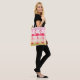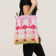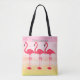 Créez un sac fourre-tout flamand rose personnalisé ajoutez votre nom ou votre texte pour le personnaliser sur des bandes chic et abîmées dans les tons rose et jaune sur toute l'impression.