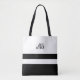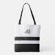 Sac fourre-tout monogramme noir et blanc. Grand monogramme de texte de bloc décoré avec de grandes bandes noires.