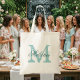 Sac fourre-tout monogramme de nom personnalisé | bleu turquoise / vert turquoise. Design élégant de logo avec des initiales monogrammées. Idée cadeau vintage pour mariée et demoiselle d'honneur en mariage.
