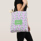 Un sac fourre-tout construit avec un motif de fleurs lilas. Customisez-le avec votre propre texte, couleur arrière - plan, entre autres options.