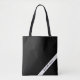 Personnalisez ce sac fourre-tout noir et blanc minimaliste discret avec votre nom dans une police de caractères script ludique et décontractée dans le coin sur une bande diagonale près du bord. Utilisez l'éditeur de modèle pour changer la couleur du sac ou la police de votre texte personnalisé. Ajoutez du texte personnalisé pour un sac à main spécial pour faire les courses, ou ajoutez le nom de votre équipe sportive ou animal de compagnie dans le coin.