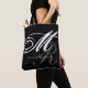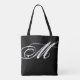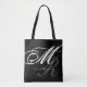 Un sac fourre-tout noir élégant avec votre nom et vos initiales monogrammed dans un style de police de script