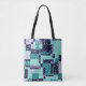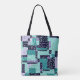 Fourre-tout vos affaires avec style avec un mignon sac de carrosserie ou épaule fourre-tout avec un motif abstrait amusant de cubes et de craquelures dans les tons vert, violet, noir, gris et blanc.