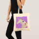 Jolie licorne avec des fleurs dans sa crinière sur un arrière - plan pourpre, sur un sac fourre-tout.