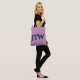 Personnalisez votre sac fourre-tout pourpre et blanc à motif de chevron avec votre propre monogramme. Le texte de monogramme est centré dans les lettres noires.