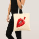 Sac fourre-tout aux lèvres rouges et deux coeurs rouges.