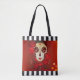 Fourre-tout rayé noir et blanc avec le rose rouge a accentué la fille de calavera d'un côté