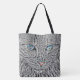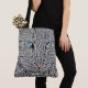 Un sac fourre-tout tout-en-un personnalisé qui comporte un arrière - plan de chat fractal artistique noir et blanc de chaque côté du sac.