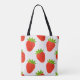 Sac blanc avec motif de fruits aux fraises rouges. Design plat.