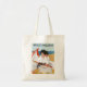 Ce sac comporte une belle illustration vintage de la couverture d'un magazine de femmes en juillet 1914. Deux filles dans le blanc s'asseyent sur une plage ensoleillée sous un parapluie rouge et blanc. L'image parfaite d'un jour d'été vintage.