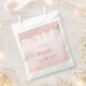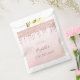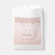 Un sac de faveur pour une fête de 10e anniversaire girly et glamour. Un faux rose or ombre, arrière - plan dégradé avec une élégante parties scintillant d'or faux rose gouttes, look goutte à goutte de peinture. Le texte : Tentez un nom écrit en or rose foncé avec un script de style moderne écrit à la main. Modèles pour une date et l'âge 10.