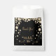 Un élégant et glamour sac de 18ème anniversaire. Fond noir et faux diamants de couleur dorée. Avec le texte : Merci ! Modèles pour le nom, la date de naissance et la date d'anniversaire et le numéro d'âge. Lettres d'or.