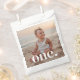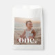 Un design moderne 1er Anniversaire avec espace pour ajouter votre propre photo et avec le mot 'one.' sur le dessus. Vous pouvez changer le mot à n'importe quoi d'autre si vous préférez !