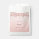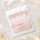 Un sac de faveur pour une fête de 21e anniversaire girly et glamour. Un faux rose d'or ombre, arrière - plan dégradé avec des gouttes, peinture goutte à goutte. Le texte : Tentez un nom écrit en or rose foncé avec un grand script de style manuscrit moderne. Modèles pour une date et l'âge 21.