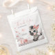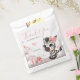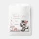 Cute girl baby shower favor bag featuring adorable little female zebra wearing a cute pink bow with some love hearts sitting on the clouds