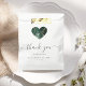 Ces élégants sacs de faveur de mariage modernes ont une forme de coeur remplie d'une aquarelle vert émeraude et de la conception de parties scintillant en faux or. Les mots "merci" apparaissent dans un élégant script d'écriture manuscrite gris charbon avec des swashes au début et à la fin. Customisez le message et ajoutez les noms du couple et de la date du mariage.