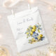Amalfi Positano Vietri bleu Majolica tuiles citrons mariage sac de faveur modèle, bouquet bleu méditerranéen d'agrumes avec citrons et fleurs en céramique bleue vase mariage faveurs imprimés personnalisés sacs de faveur